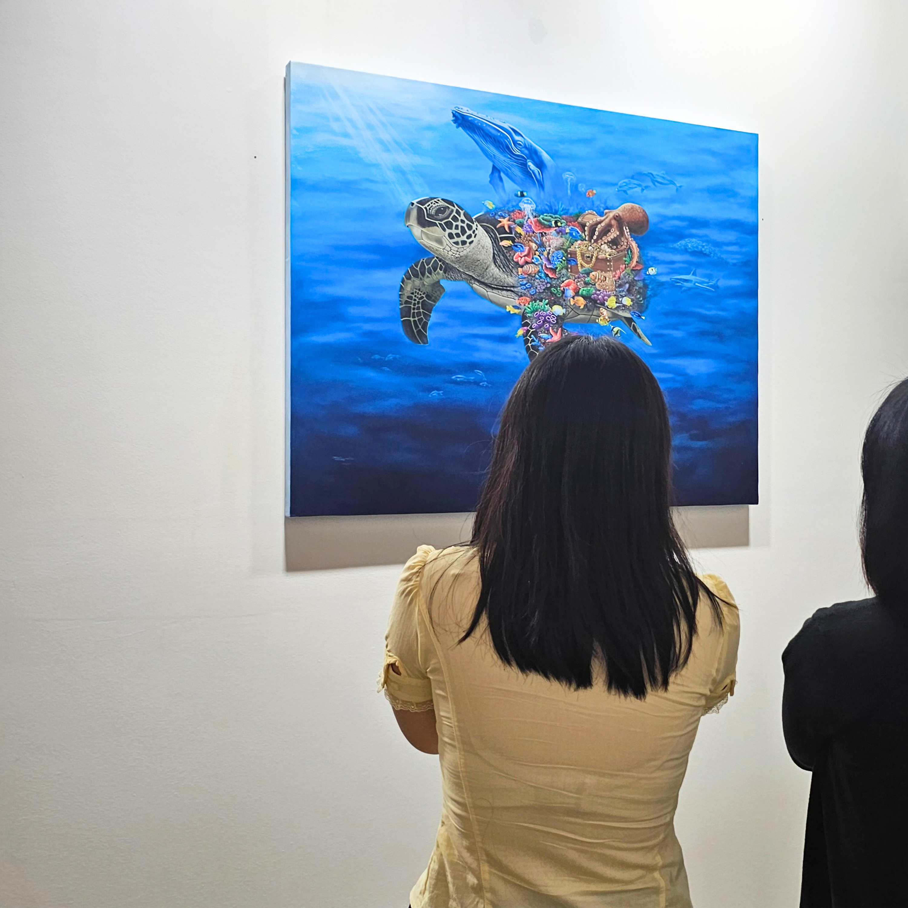 Karya ini menampilkan penyu sebagai simbol ketangguhan dan pelindung kehidupan laut. Di atas cangkangnya, ia membawa terumbu karang, biota laut, dan peti harta karun, melambangkan kekayaan dan pentingnya ekosistem laut. Dengan berenang melawan arus, penyu digambarkan sebagai penjaga yang membawa kehidupan menuju tempat yang lebih aman, diikuti makhluk laut lain yang juga mencari kedamaian.