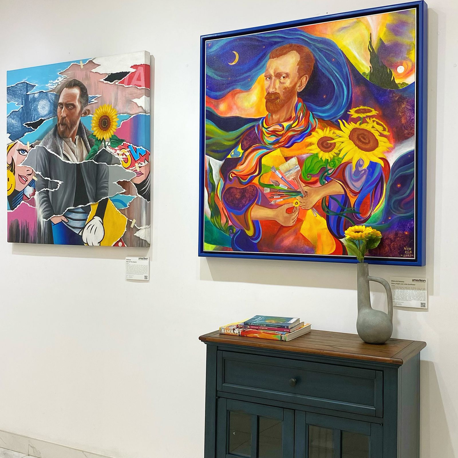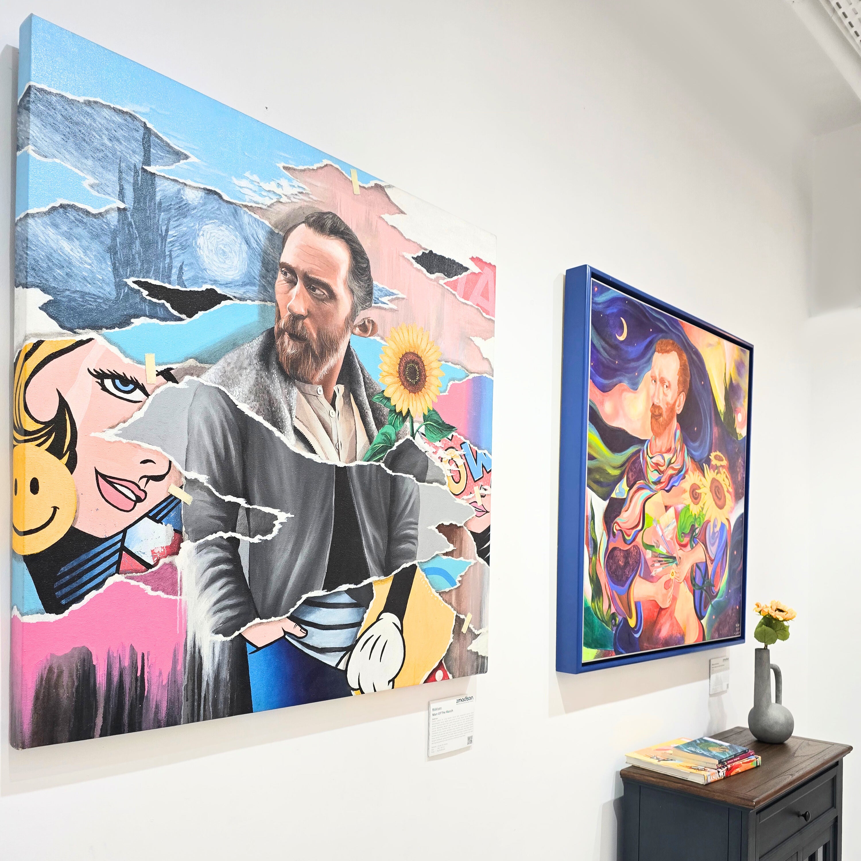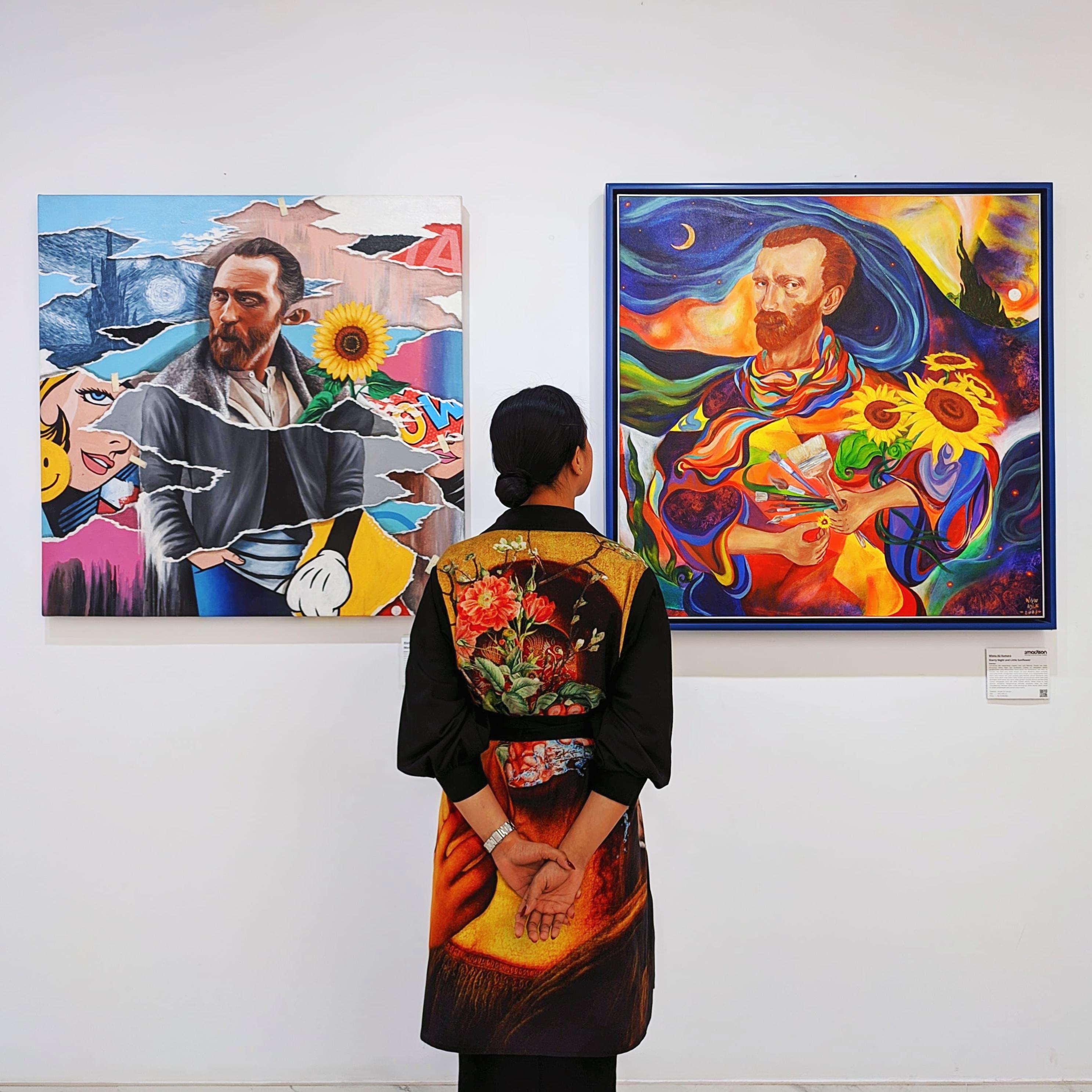 In this painting, the creator explores visual expression more boldly than in his usual digital works. The collage-like impression is enhanced by parodying a figure resembling Van Gogh as the main subject, combined with contemporary fashion styles and other popular elements. The choice of Van Gogh as a figure is based on the creator’s deep admiration for the maestro, who is seen as having a strong character both in his artworks and personality and remains relevant across generations. Van Gogh’s productivity in creating art, despite living a life full of turmoil, serves as a source of inspiration and motivation for younger generations to keep creating without pause.