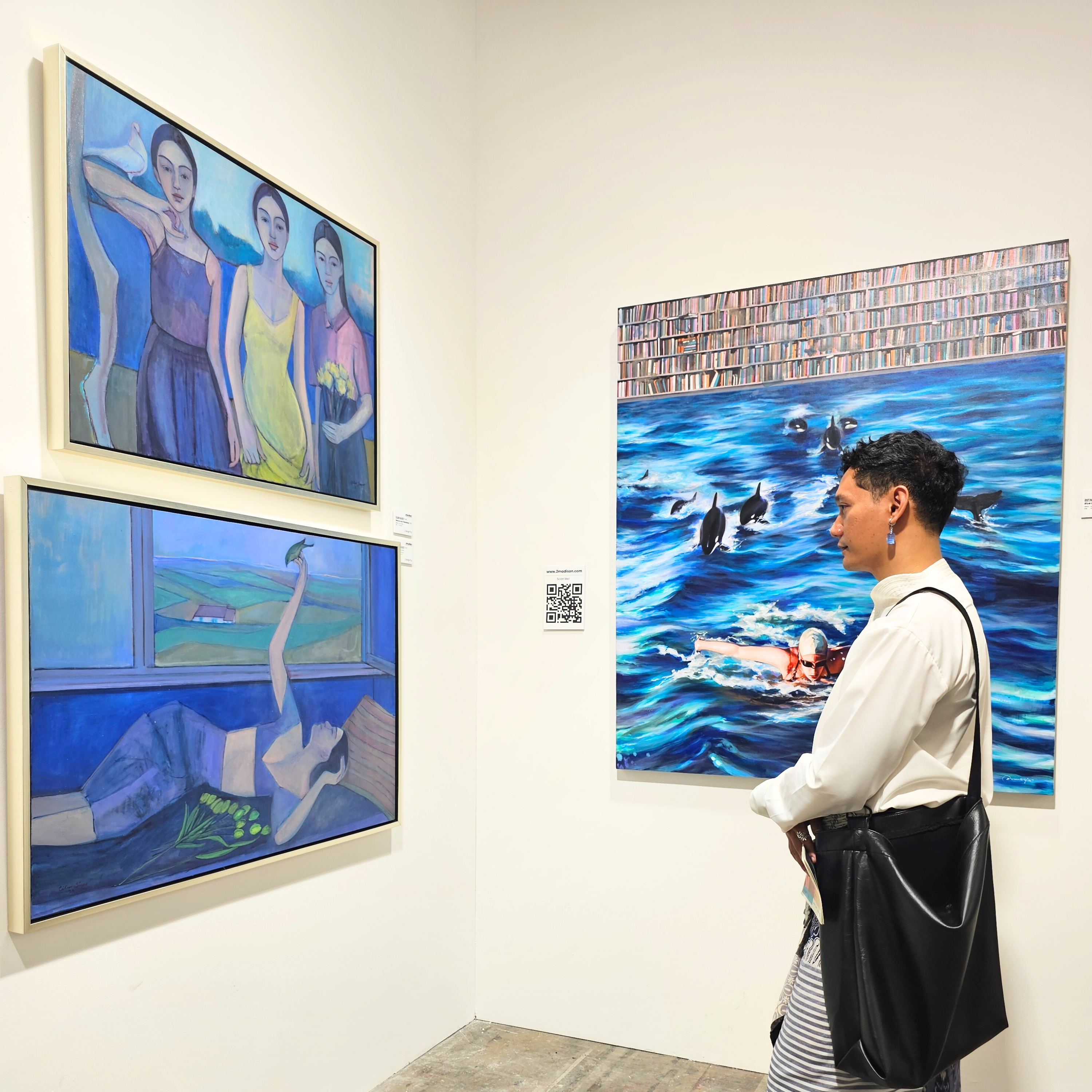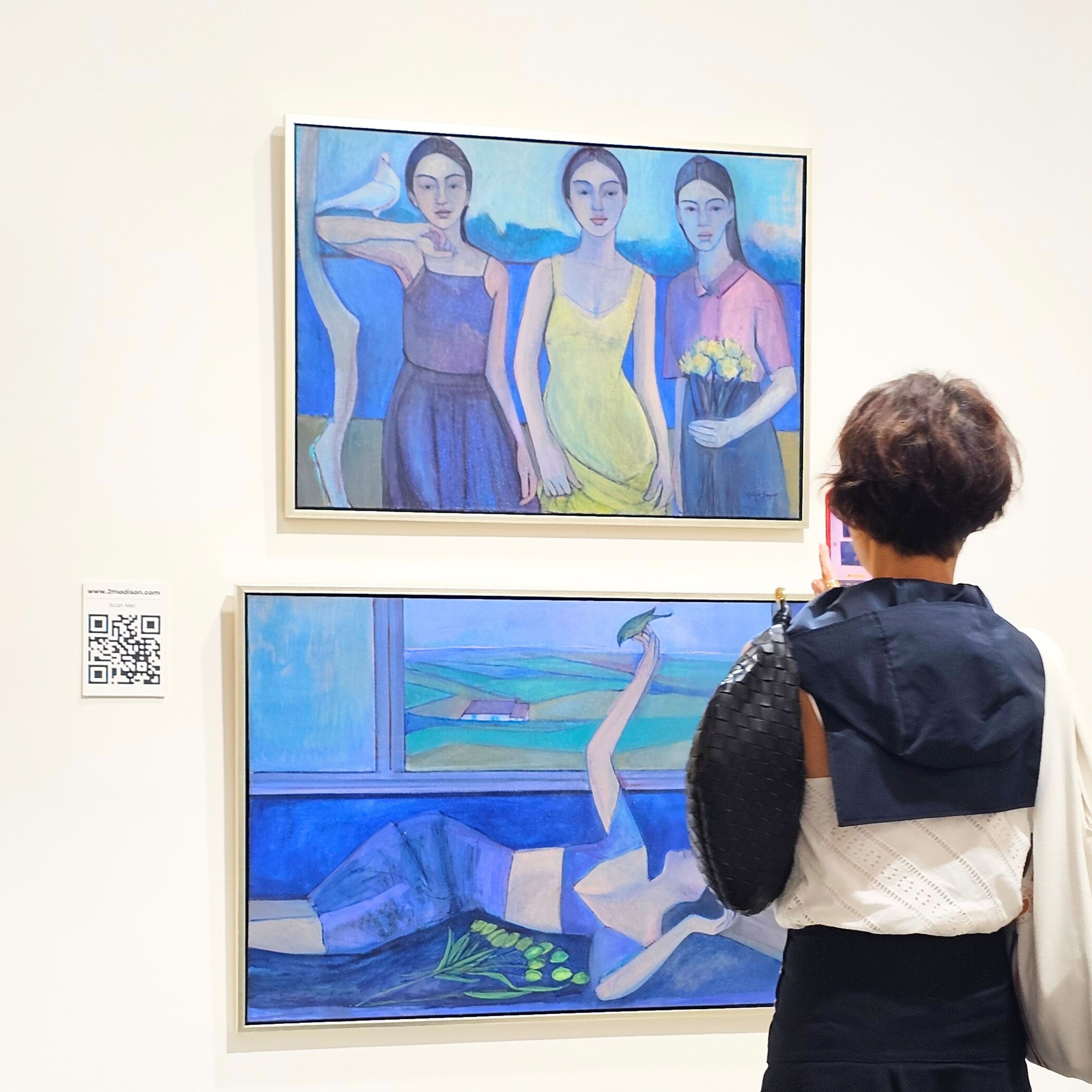 Karya ini menggambarkan tiga wanita yang mewakili berbagai suasana hati dan tahap kehidupan perempuan, dengan simbol burung merpati untuk kedamaian, gaun kuning untuk keceriaan, dan bunga untuk keindahan sekaligus kefanaan. Latar aquamarine menciptakan suasana tenang, mengajak penikmat merenung tentang perjalanan spiritual dan identitas perempuan.