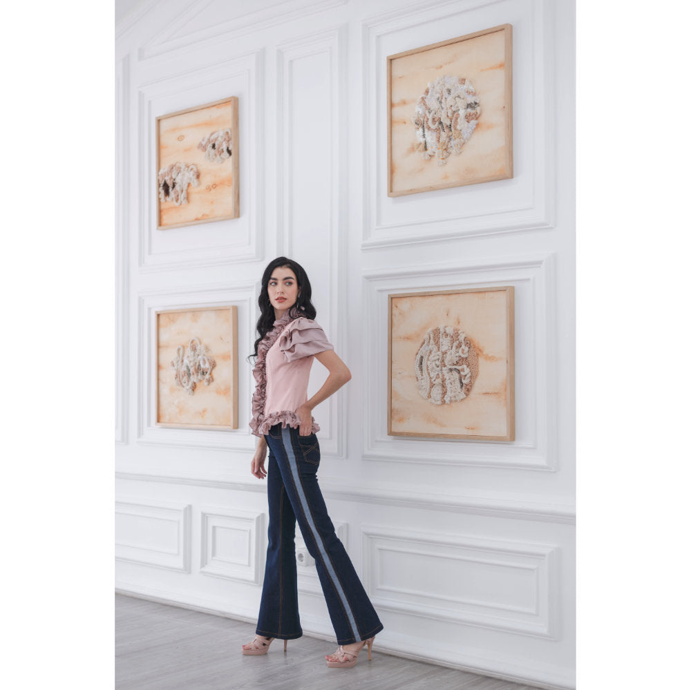 Karya ini menggambarkan perjalanan emosional seseorang dalam proses bangkit dari keterpurukan. Bentuk-bentuk tekstil yang tidak beraturan dan saling bertumpuk mencerminkan ketidakteraturan hidup yang sering kali menyelimuti kita, namun juga menunjukkan dinamika dan potensi untuk berubah. Latar bernuansa hangat seperti permukaan tanah yang terkena sinar mentari dini hari memberikan kesan harapan dan awal yang baru. Karya ini mengajak kita melihat bahwa dalam ketidakteraturan dan spontanitas, ada keajaiban yang muncul secara alami sebuah proses penyembuhan dan pelepasan yang datang dari dalam diri.