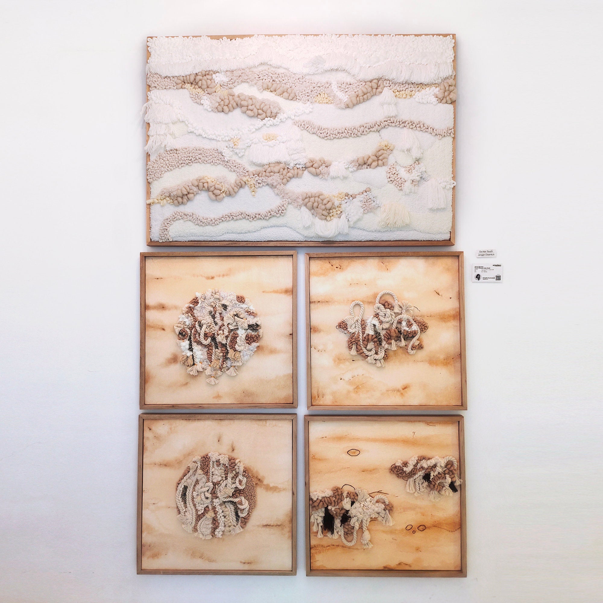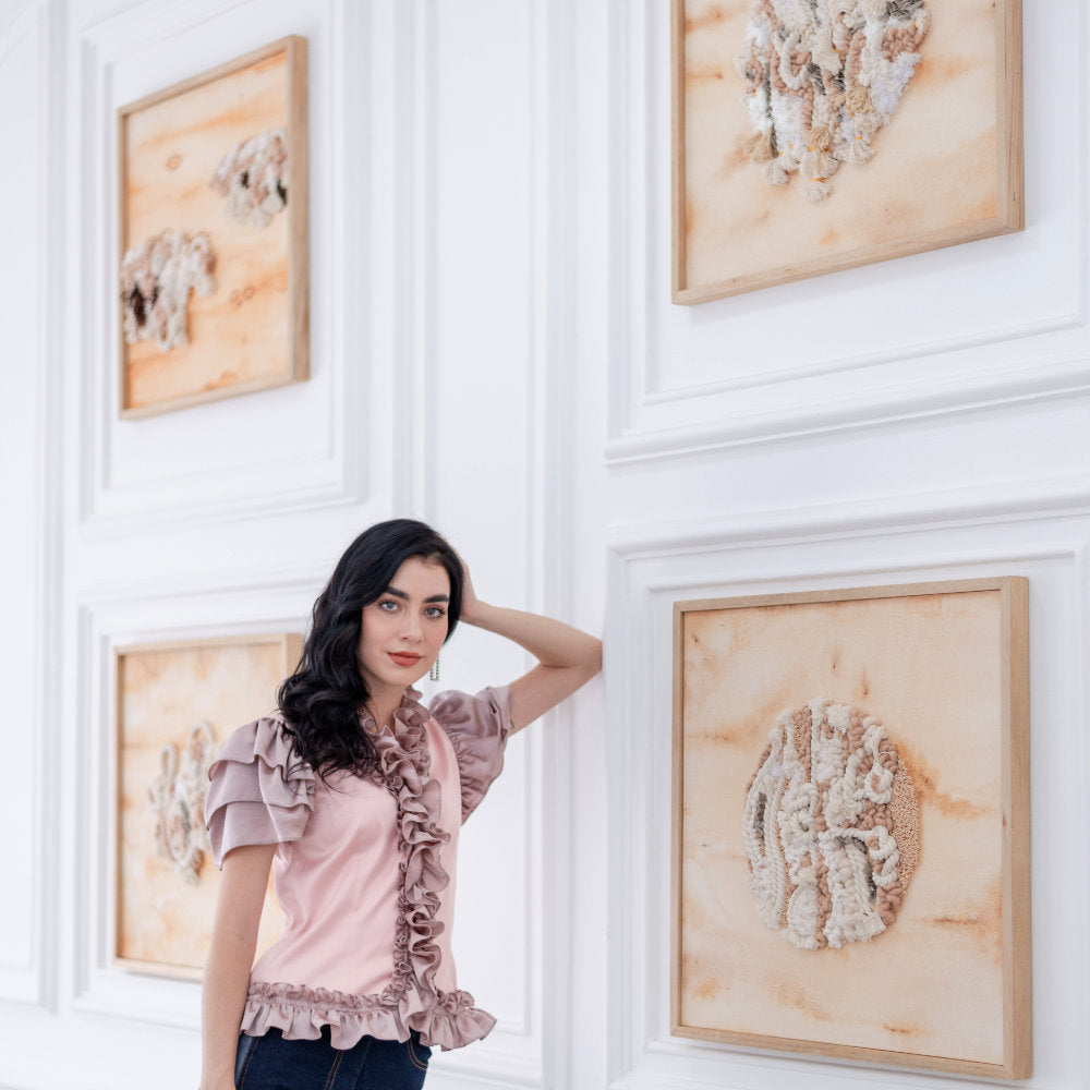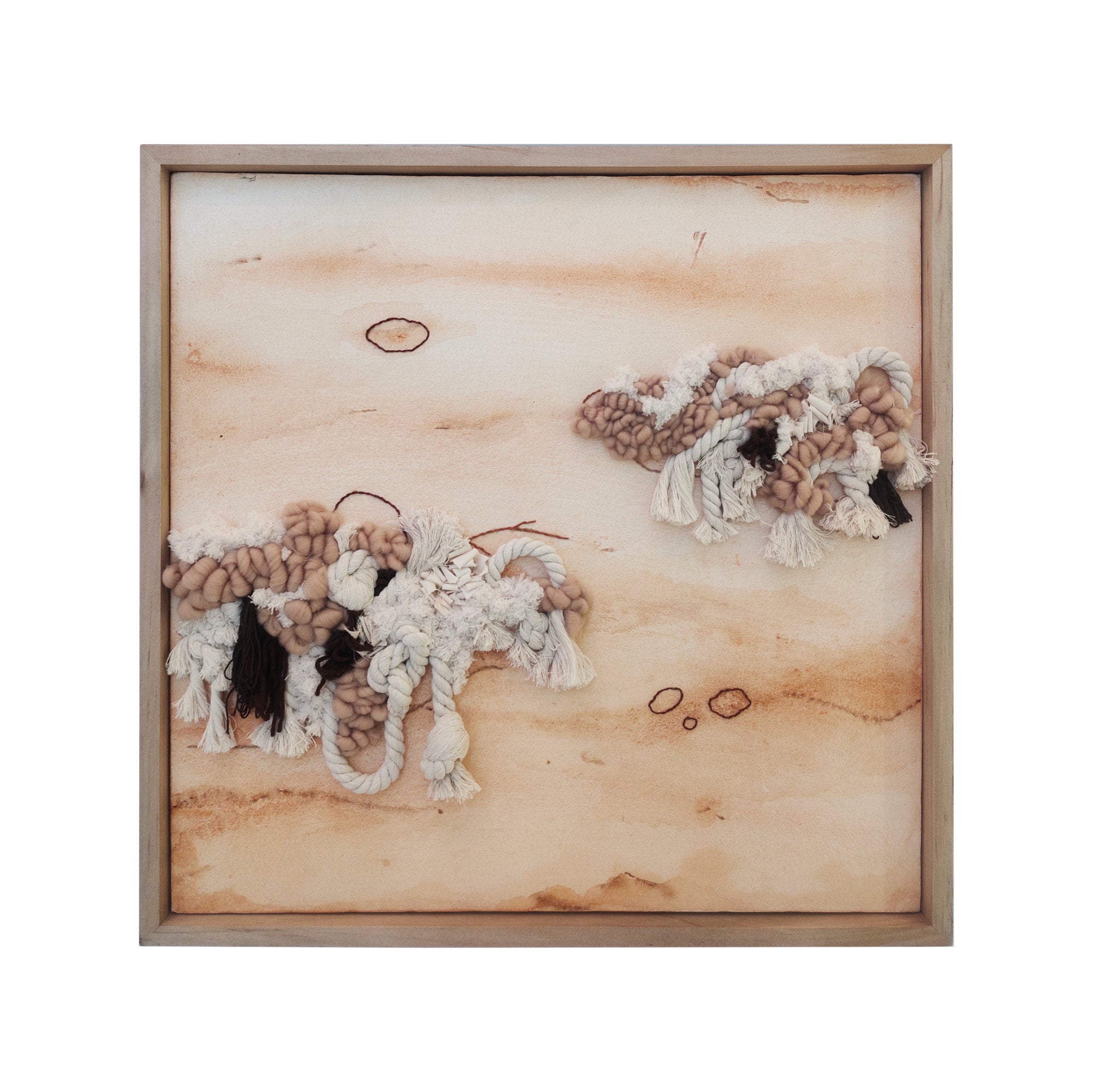 The painting titled Rise at Dawn illustrates an emotional journey of someone rising from adversity. The irregular and layered textile forms reflect the chaos that often surrounds our lives, yet also represent movement and the potential for transformation. The warm-toned background, resembling earth touched by early morning sunlight, evokes a sense of hope and a fresh beginning. This artwork invites us to see that within disorder and spontaneity, there is a natural miracle a process of healing and release that comes from within.