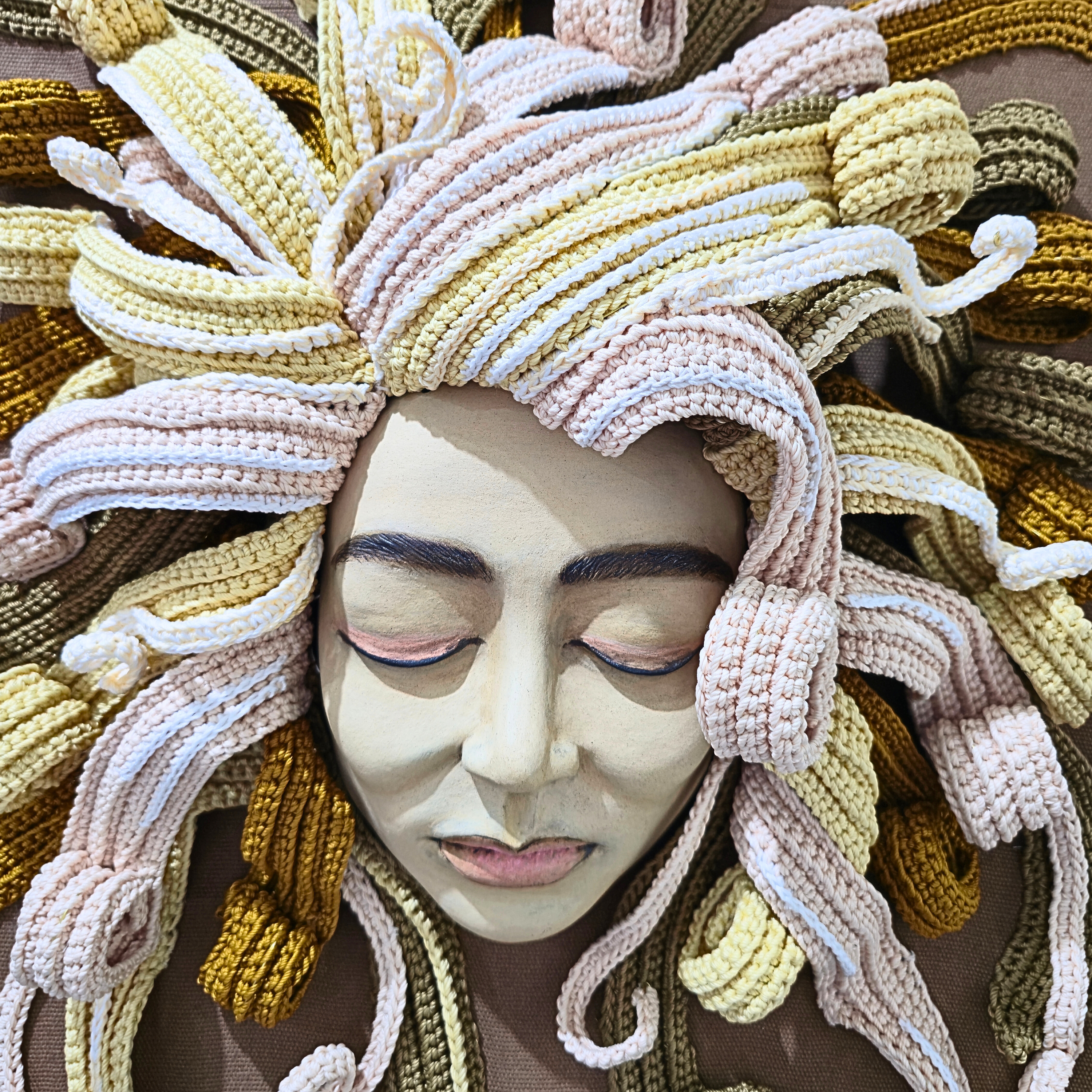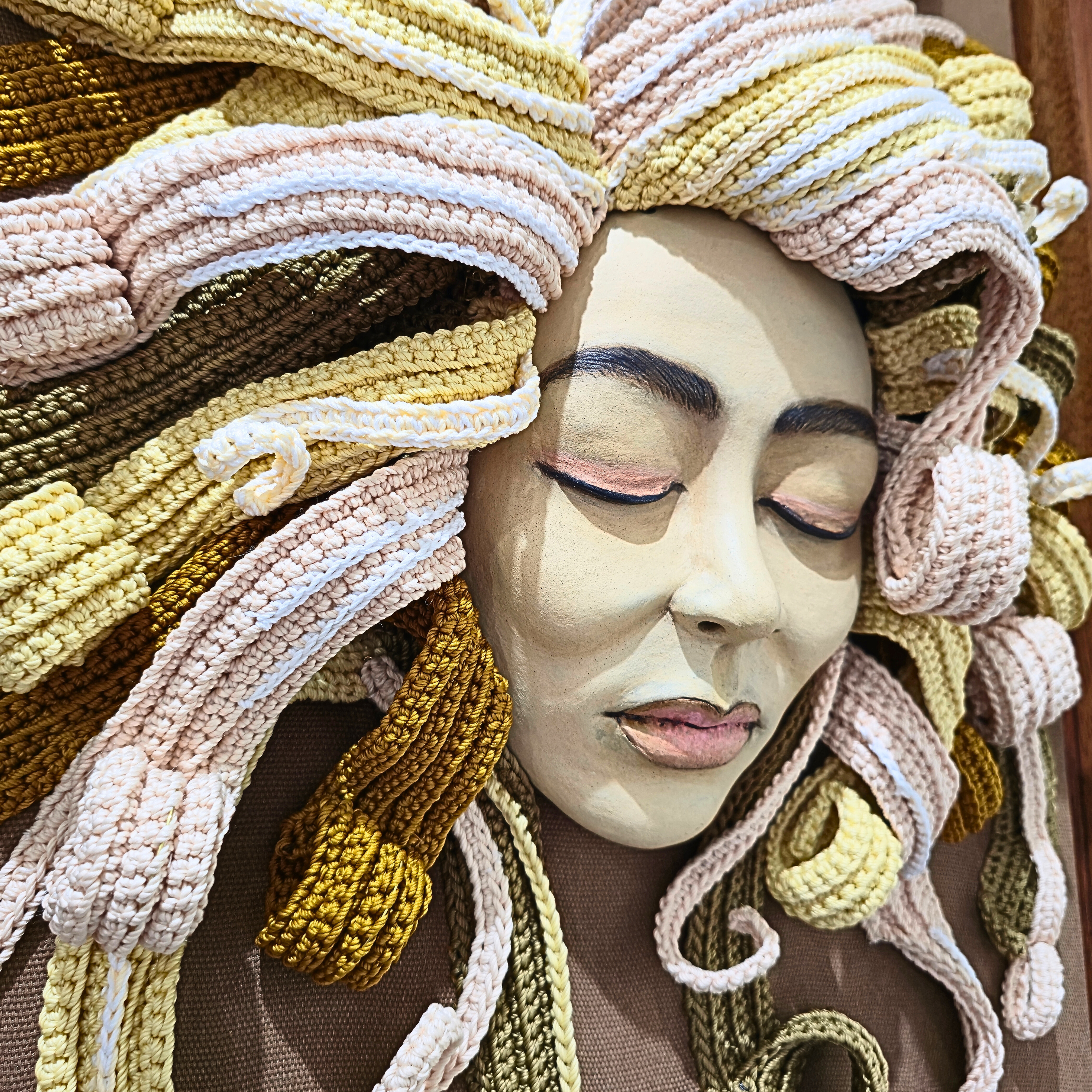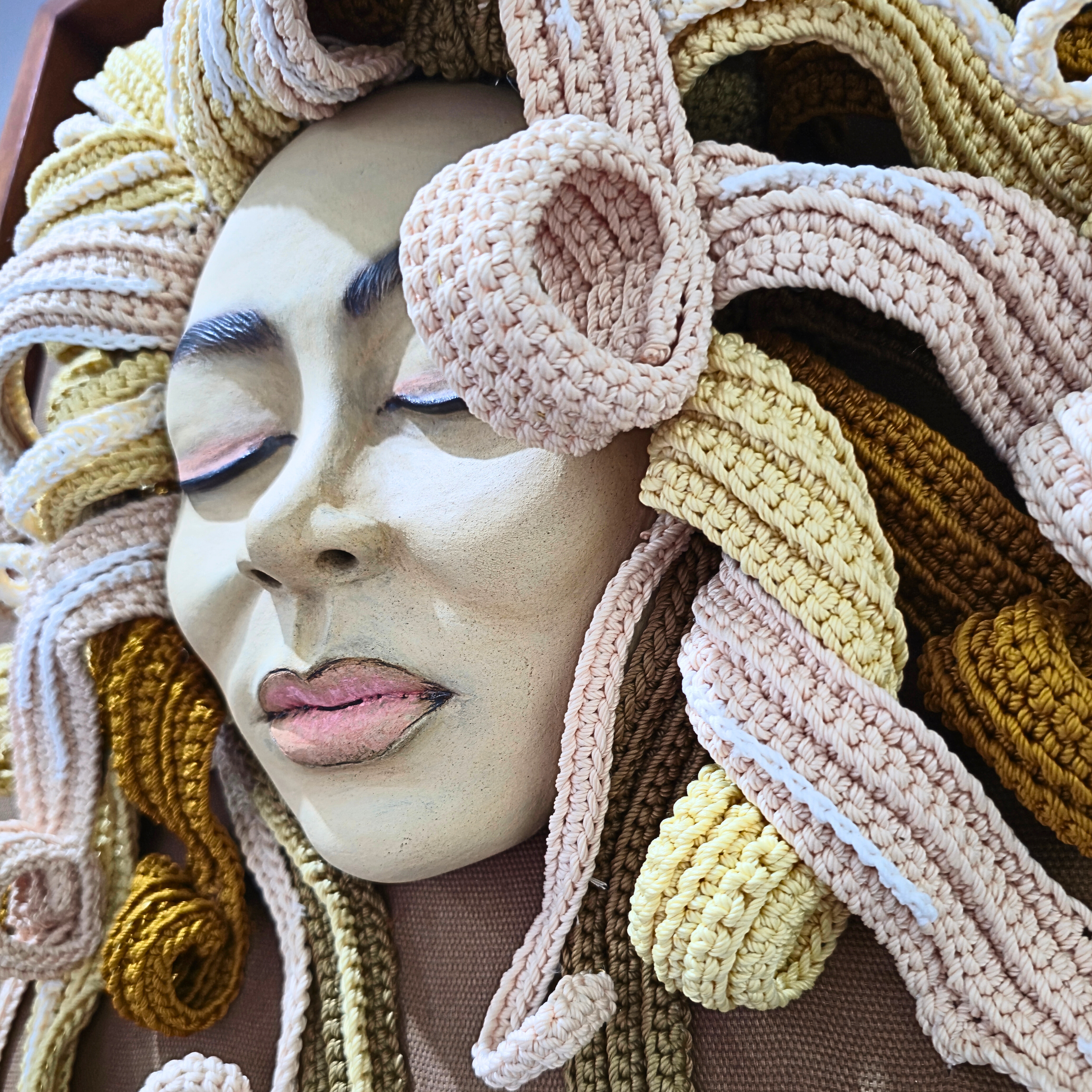 Karya ini terinspirasi dari pengalaman awal masa perkuliahan di FSRD ITB, ketika grup band angkatan sang seniman, Seurieus Band, sering tampil di kampus dengan kostum-kostum unik dan lucu. Salah satu kostum menampilkan karakter perempuan dengan rambut palsu pirang yang bergelombang, yang dimaksudkan untuk menghibur penonton. Dalam karya ini, wajah dan bentuk rambut pirang digambarkan lebih realistis untuk menampilkan karakter perempuan yang sebenarnya, sehingga karakterisasi tetap jelas dan tidak menimbulkan kesalahpahaman.