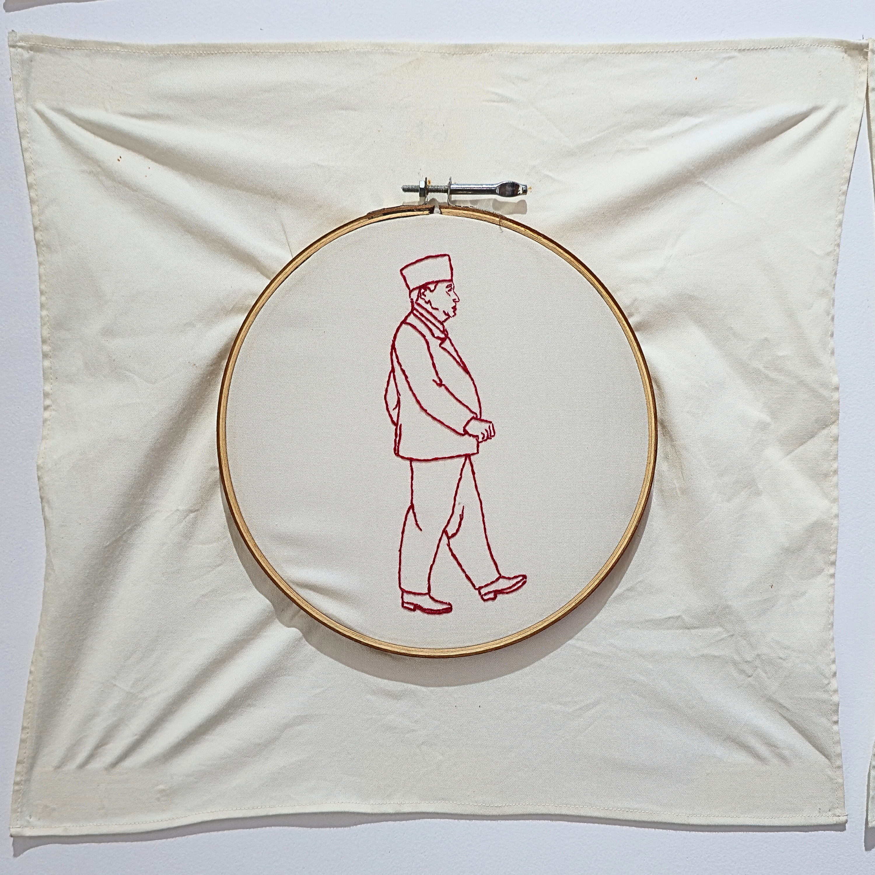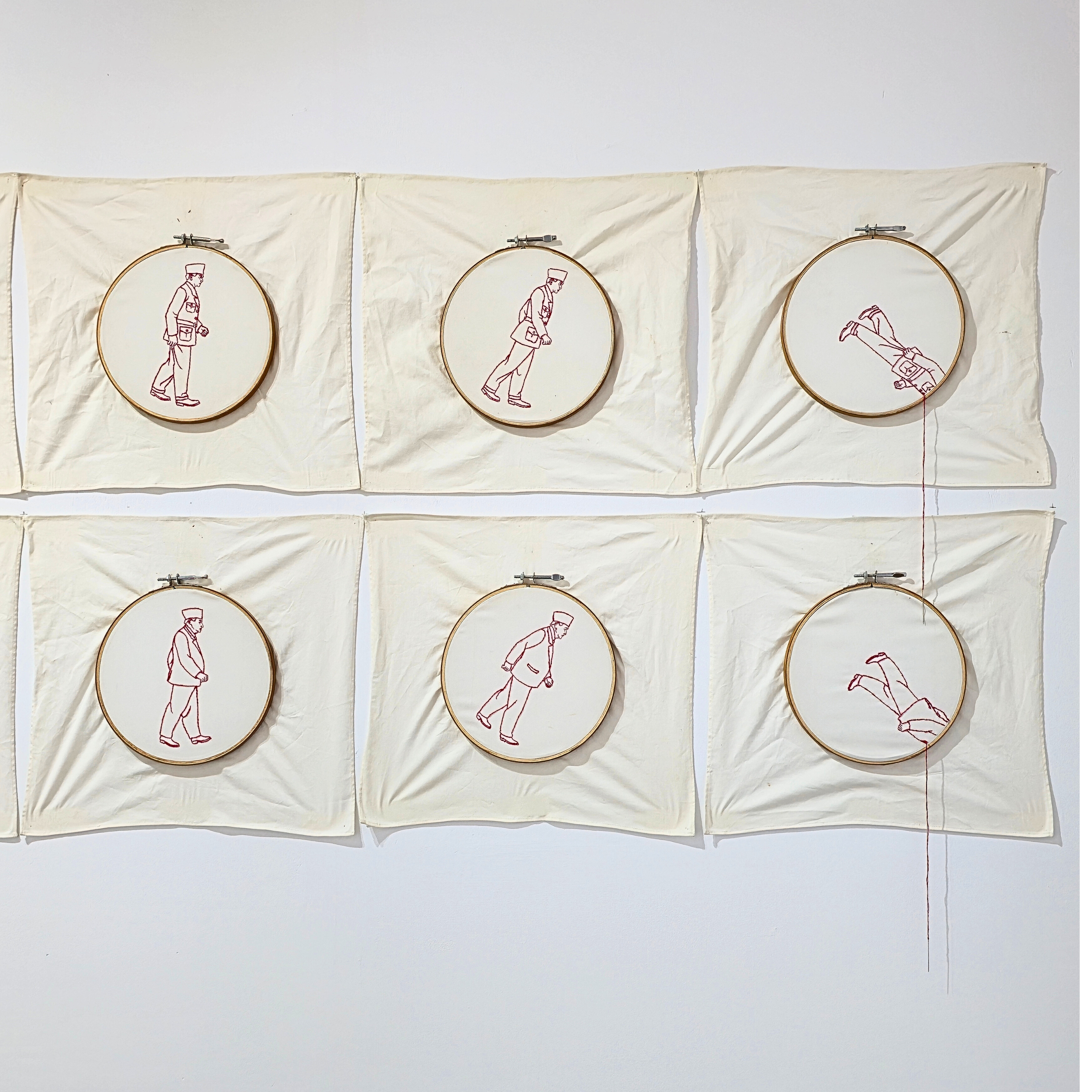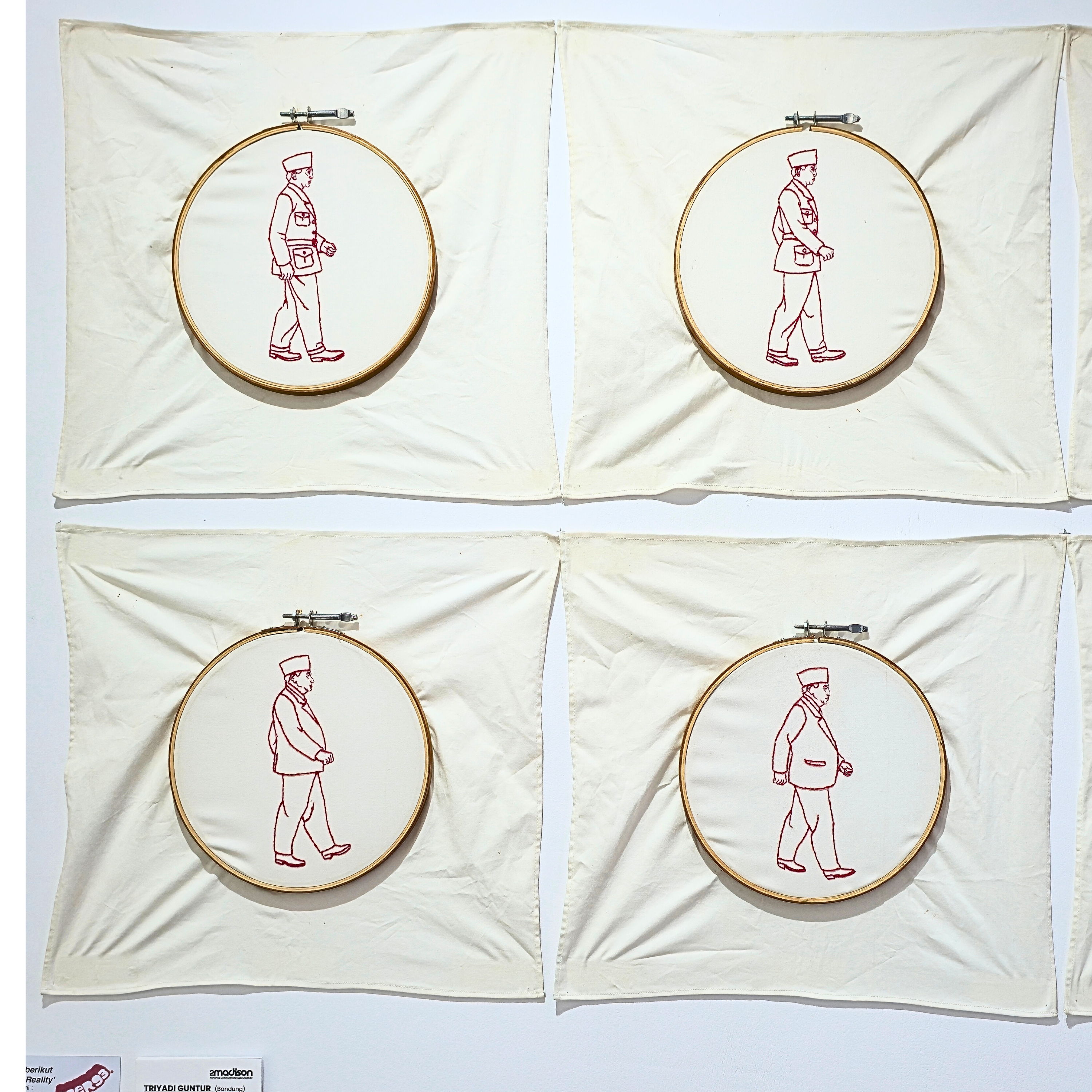 “Menjelujur Sejarah” is part of the Historytopia series, which questions history as a grand narrative long considered objective. This artwork highlights history as a journey between triumph and collapse, thesis and antithesis, and the masculine undertones in its writing, while offering a critical perspective through the medium of thread and fabric embroidery, a tradition closely tied to women’s labor. The artwork invites viewers to reflect, understand, and draw lessons from the course of history, allowing art to function as a reflective mirror for humanity.