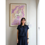 The artwork "Lollipop” conveys the theme of "peace" through the use of bright, candy-like colors that create a calm and pleasant atmosphere for the viewer. In the painting, a horse is seen walking peacefully in front of a waterfall, reinforcing the sense of serenity the artist aims to express. Elements of Renaissance style are also incorporated as decorative details, adding depth and visual beauty to the piece.