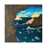 This artwork depicts the dynamics of life through waves rolling between cliffs and mountains. The waves symbolize energetic challenges, while the pastel mountains represent calmness amidst the turmoil. The view through the cliff’s gap invites reflection on the hustle and bustle of life beyond our comfort zone. This piece creates a harmony between chaos and serenity, reminding us that behind life’s turbulence, there are always simple moments that bring happiness.