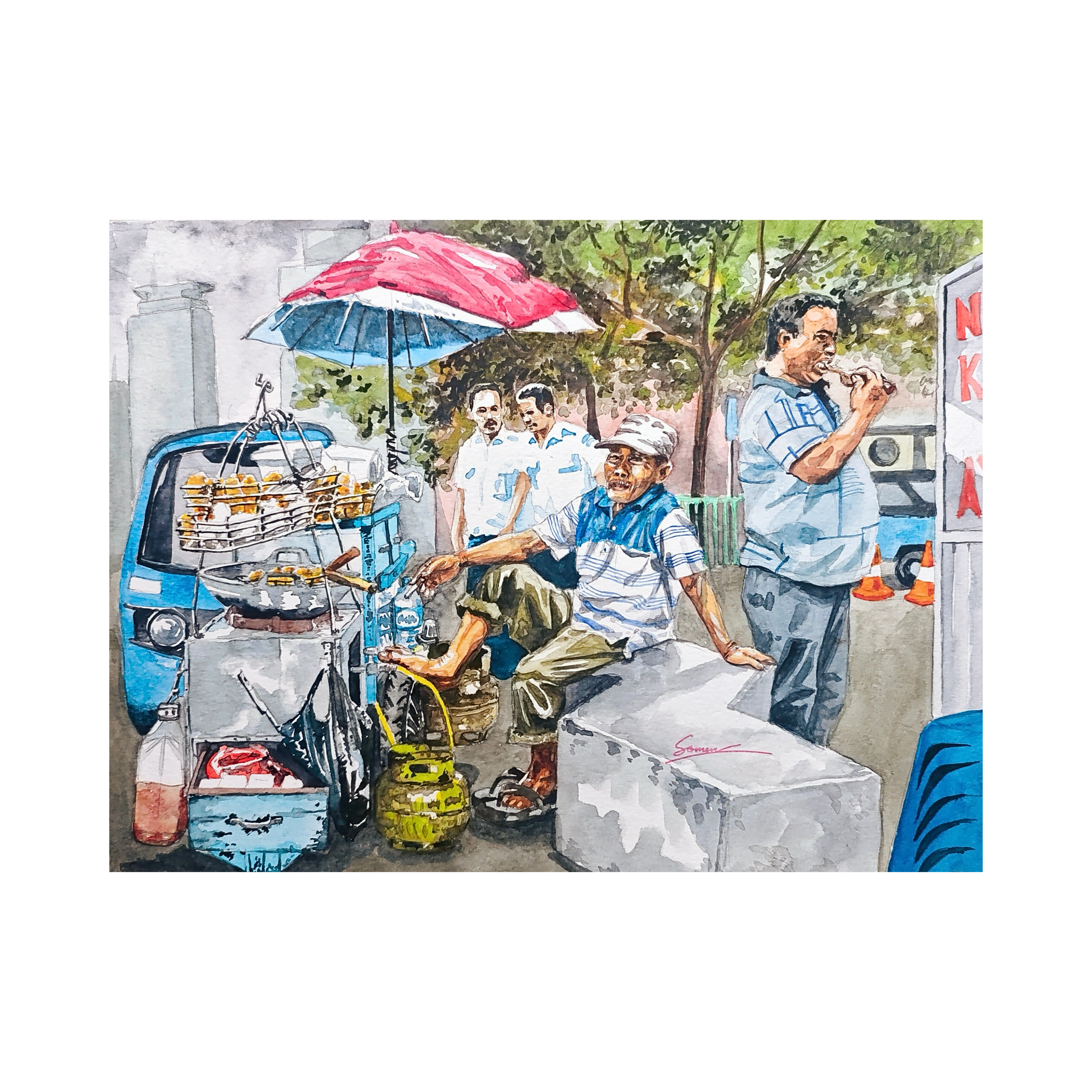 Momen dan ruang tidak pernah tetap. Cahaya, manusia, dan lanskap terus berubah. Sketsa cat air ini dibuat sebagai upaya menangkap dan menyimpan momen-momen yang akan segera berlalu. Dengan menyederhanakan bentuk dan memilih elemen yang paling penting, karya ini berfokus pada esensi sebuah ruang atau kejadian. Melalui proses ini, sketsa cat air menjadi cara untuk belajar melihat dan menghargai keindahan sederhana yang sering terlewatkan.