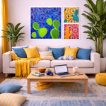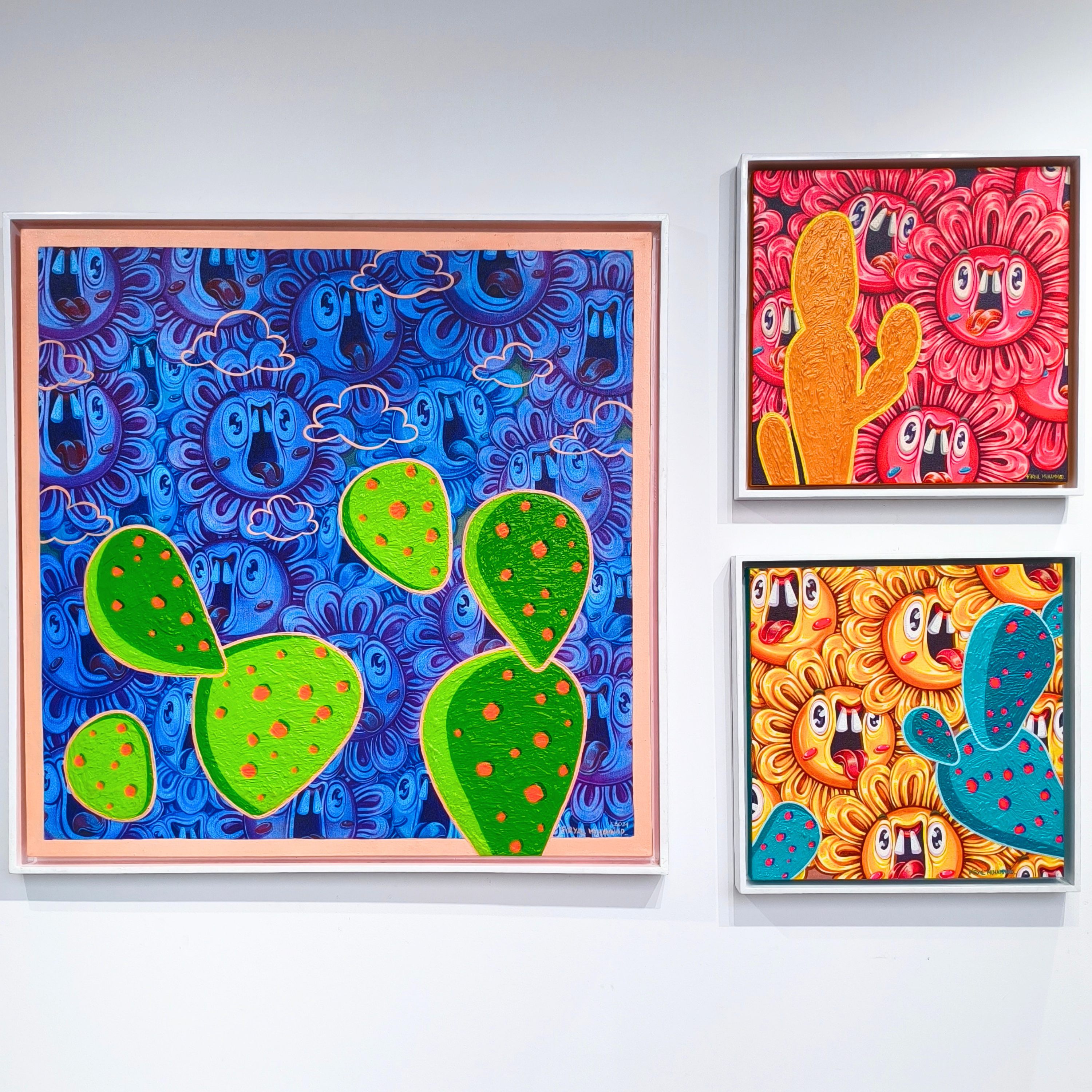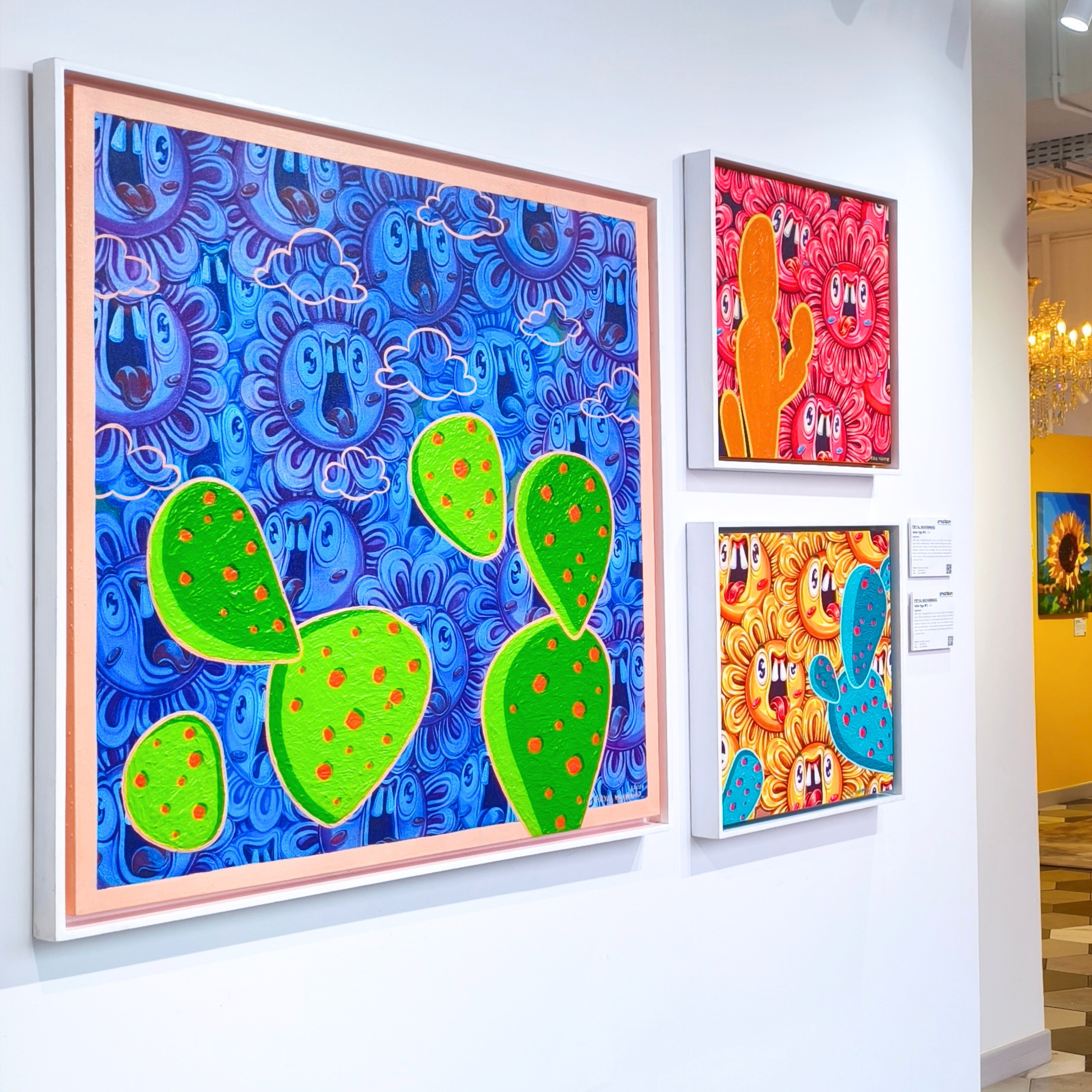 “Alter Ego” portrays the hidden facets within a person. Through the recurring forms of flowers and cacti, the artwork suggests that within a single self exist many emotions, traits, and ways of enduring that coexist side by side. Its bright colors create a light, playful impression, yet beneath them lie deeper reflections on identity and inner feelings. This artwork also reflects a Pop Surrealism approach through its blend of imaginative and symbolic visual elements. Presented within an Art Gallery Jakarta context, it contributes to the evolving landscape of contemporary art Indonesia while reinforcing its presence within the broader scope of Art Indonesia.
