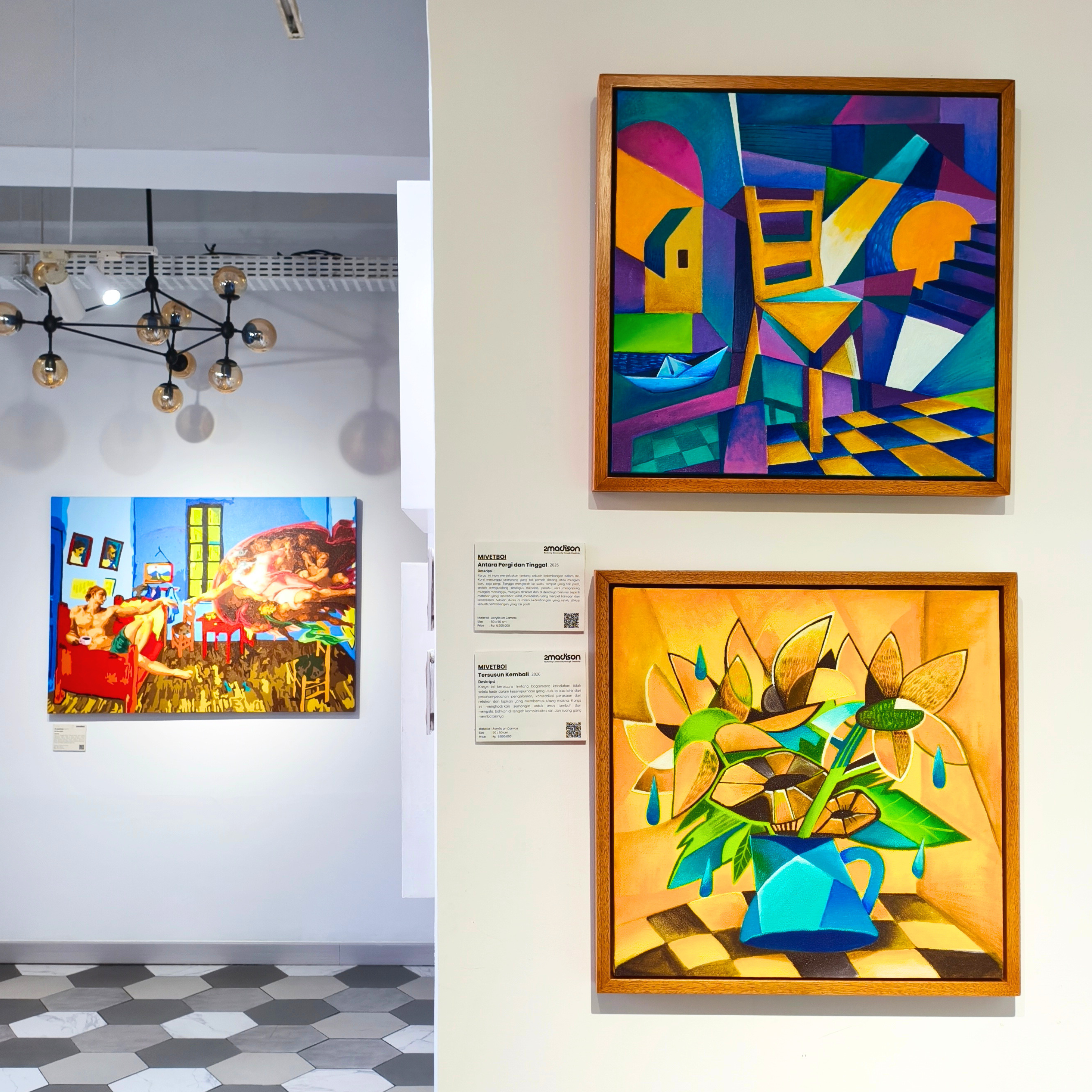 Karya ini juga memperlihatkan pendekatan Kubisme melalui susunan bentuk yang terfragmentasi dan perspektif yang berlapis. Dipresentasikan dalam konteks galeri seni Asia Tengggara, karya ini mencerminkan dinamika seni kontemporer ASEAN yang terus berkembang, sekaligus memperkuat posisinya dalam lanskap karya seni Asia yang kaya akan eksplorasi visual dan gagasan.