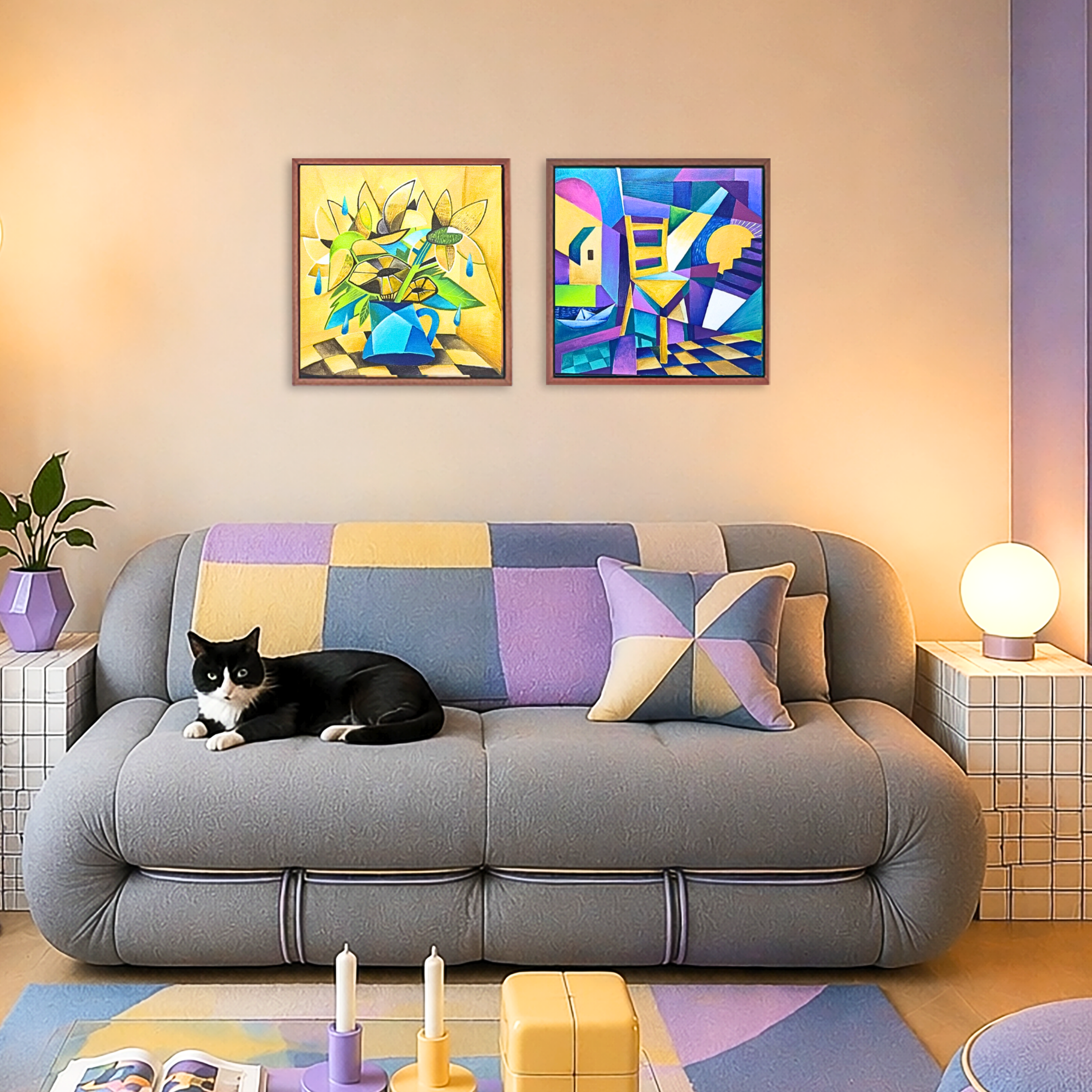 This artwork seeks to express a sense of inner uncertainty. A chair waits for someone who never arrives or perhaps has just left. A staircase leads to an unknown destination, at once inviting and resisting. A small boat drifts, perhaps waiting, perhaps lost, while nearby a light glows like a delayed sunrise, splitting the space between hope and anxiety. It is a world where doubt is always accompanied by an unresolvable hesitation. This artwork also reflects a Cubism approach through its fragmented structures and layered perspectives. Presented within an Art Gallery Southeast Asia context, it contributes to the evolving landscape of contemporary art ASEAN while reinforcing its presence within the broader realm of Art Asia.