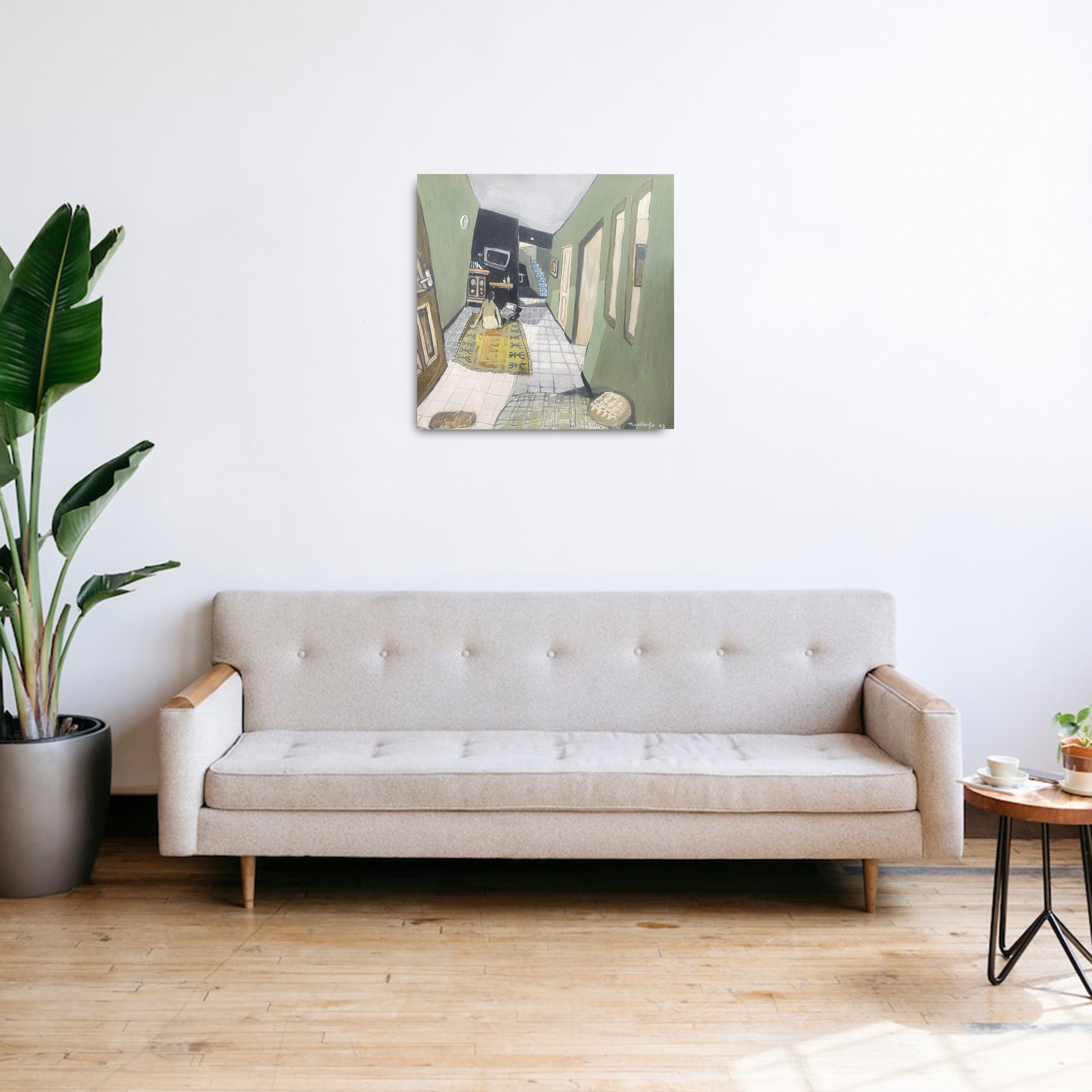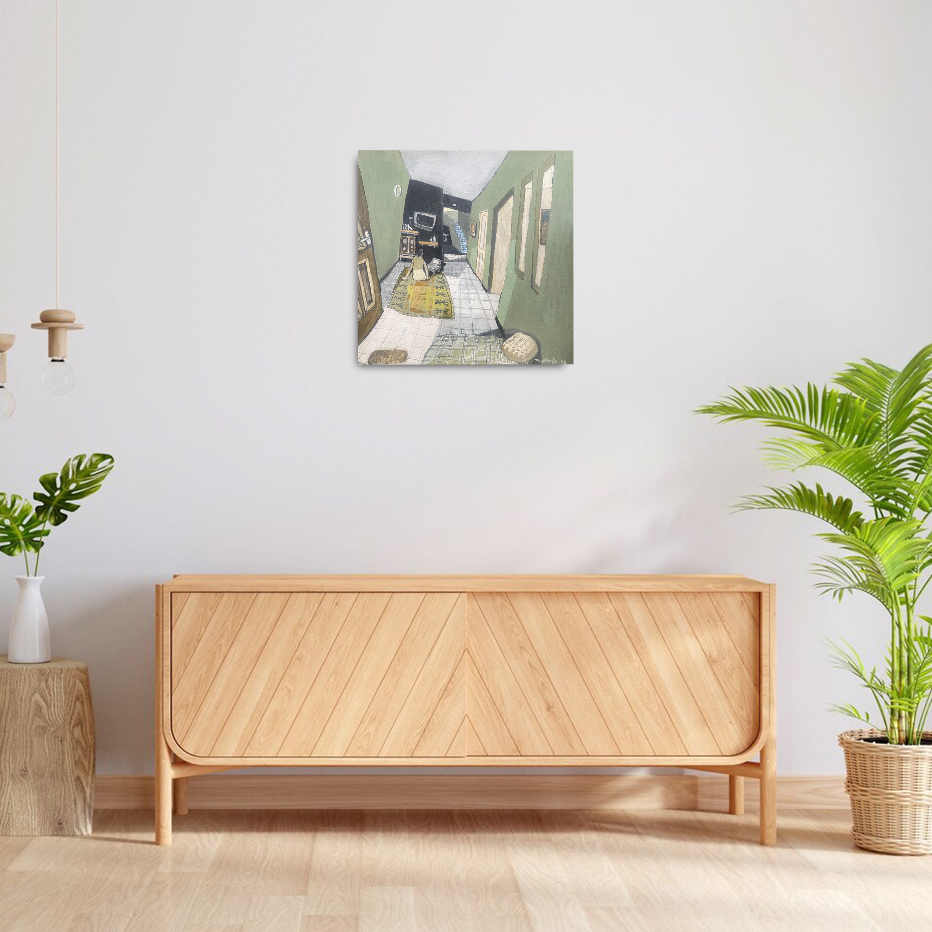 This artwork depicts four interconnected worlds: the real world we stand on, the world that never sleeps (a painting studio on the upper floor), the inner world that holds our deepest thoughts and emotions, and the virtual world connected through technology. These four realms interact with one another, creating a visual dialogue that stirs the viewer's thoughts and emotions.