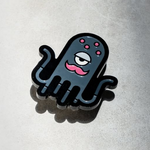 Pin ini menampilkan desain dari karakter Yono, Mogus gurita berwarna hitam dengan aksen pink serta ekspresi lucu dari The Mogus.