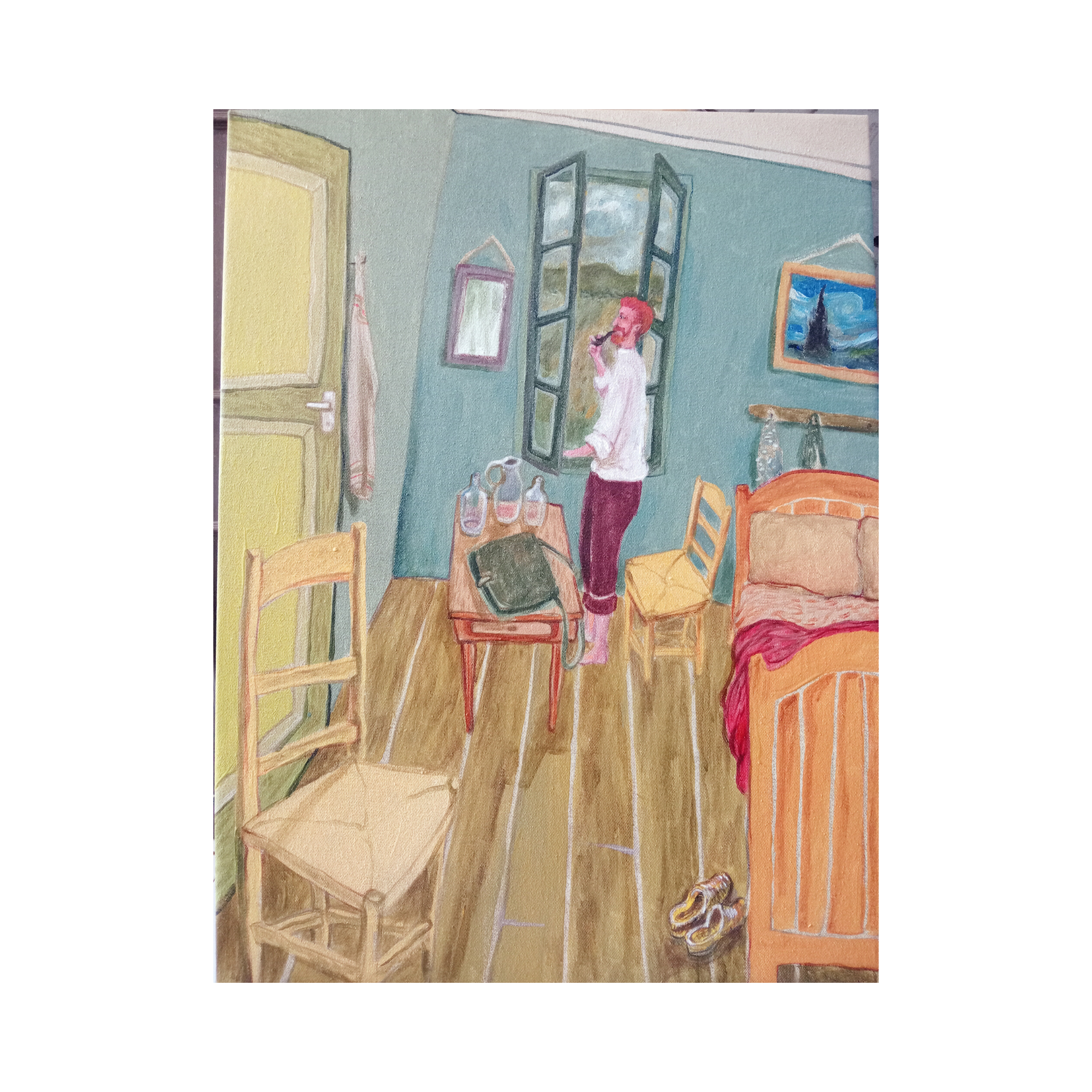 This artwork speaks of sensing both presence and absence of what comes and goes, of birth and death as part of life. The way Vincent van Gogh perceives the wind in this piece reflects how he lived: attuned to small, often overlooked details that are essential to understanding oneself. The artwork also reminds us that, beyond his suffering, it is these simple details that kept him alive and continue to make him timeless. This artwork also reflects a Figurative Expressionism Art approach through its emotional and symbolic depiction of life experiences. Presented within an Art Gallery Southeast Asia context, it highlights the development of contemporary art Indonesia while positioning the artist as part of Emerging artist Asia, offering a personal and reflective perspective.