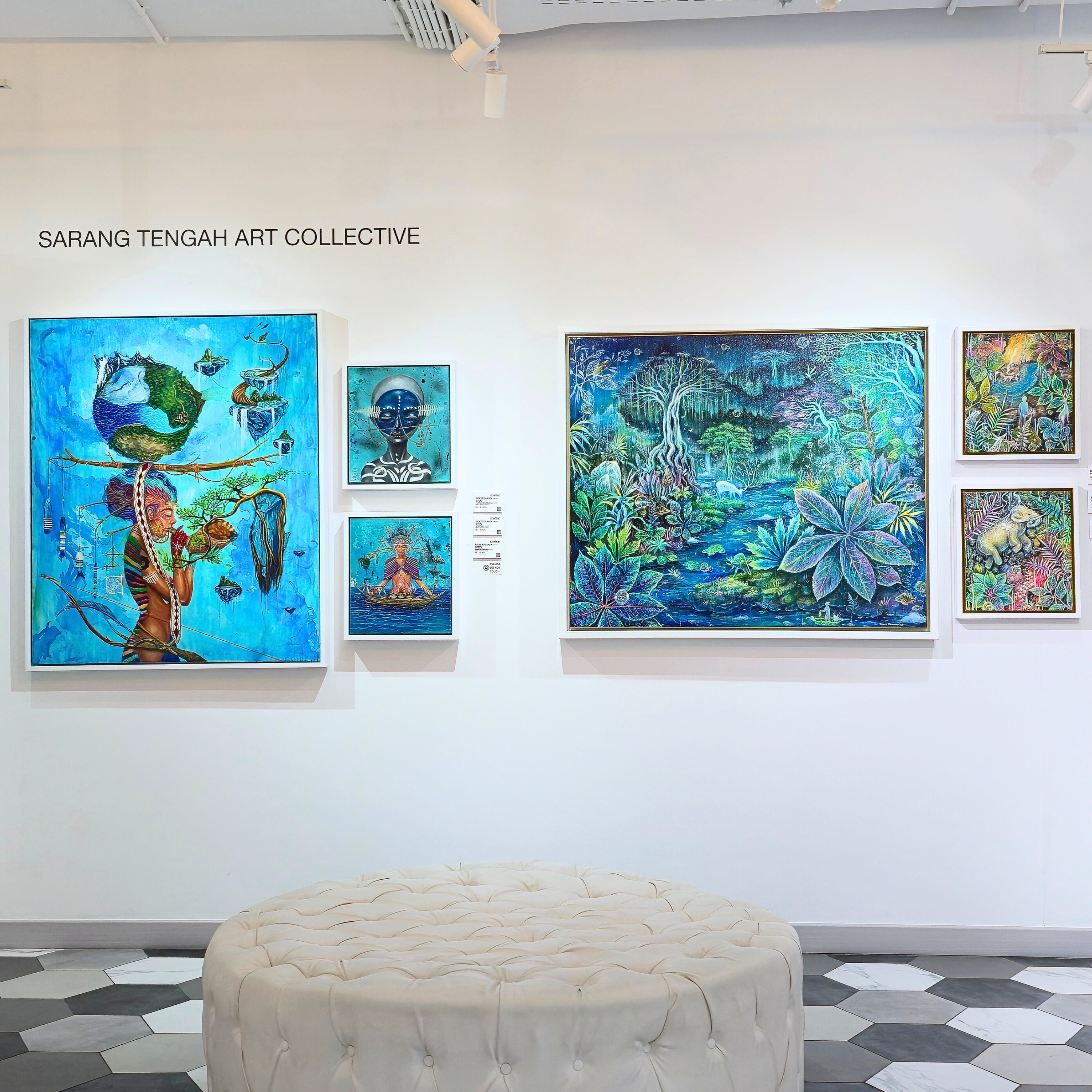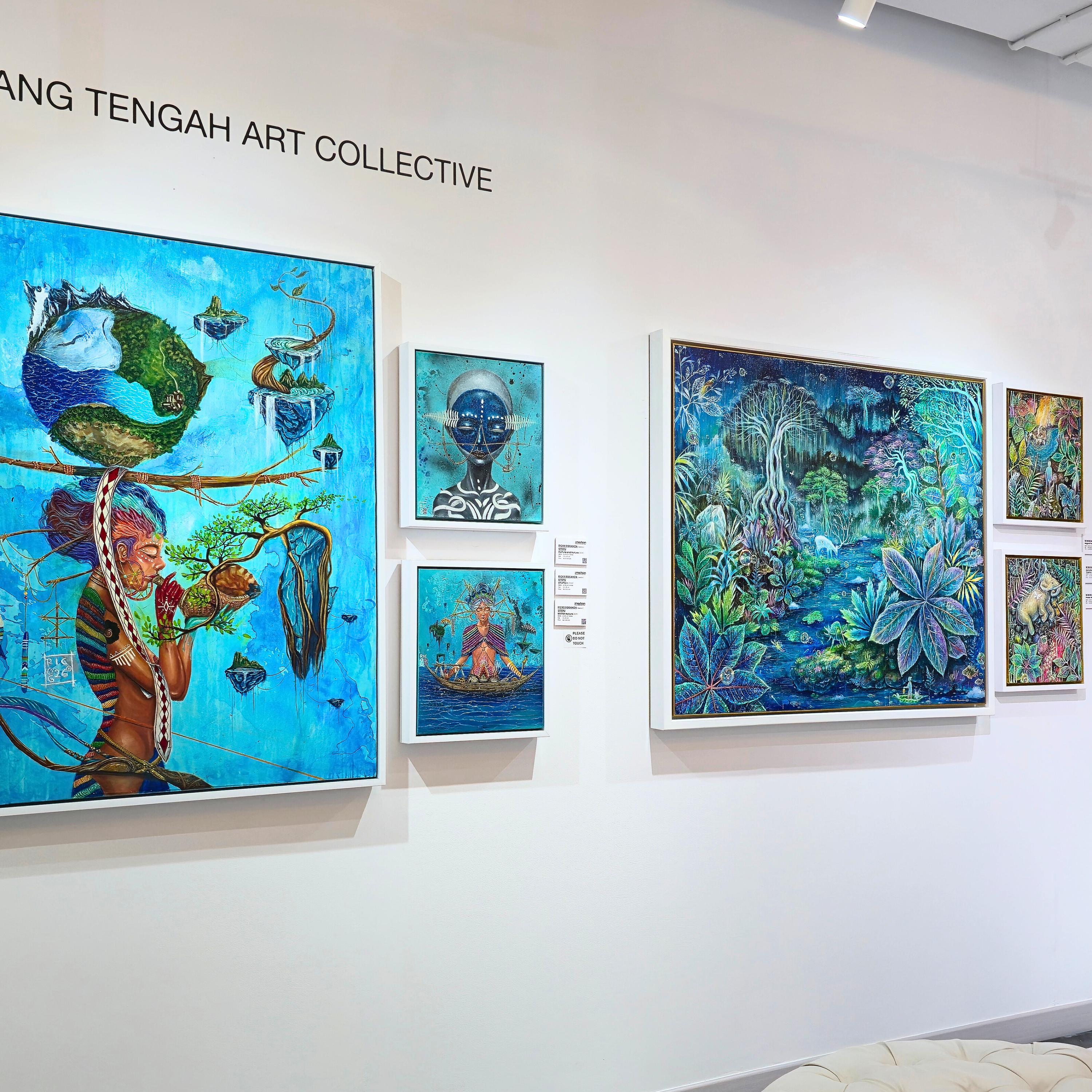 Rizky Romansyah, seniman asal Surakarta yang menampilkan simbol-simbol budaya Jawa, seperti Klono, Punakawan, dan kapal Majapahit, yang dideformasi dan dipadukan dengan elemen kontemporer, menciptakan dialog antara tradisi dan realitas modern.